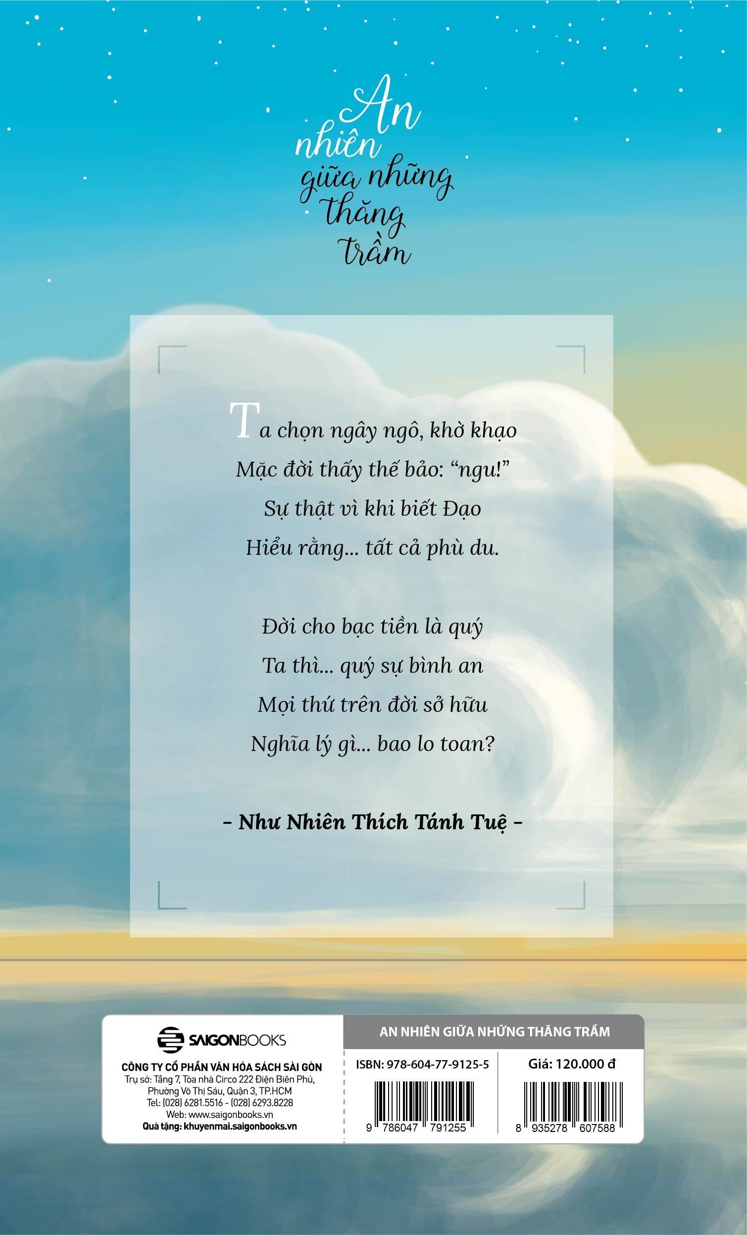 Thật hoan hỷ khi giữa cuộc đời chênh vênh, huyên náo này có một tâm hồn thiền vị, sống chan hòa vì đời vì đạo, miệt mài chuyên chở những tặng phẩm yêu thương giúp chuyển hóa nỗi khổ niềm đau của nhân sinh. Thật may mắn cho tất cả những ai có đủ duyên cầm trên tay cuốn sách An nhiên giữa những thăng trầm này, bởi mỗi trang sách sẽ như ngọn đèn soi sáng lòng ta, giúp ta tự tìm thấy và nuôi dưỡng sự bình an đích thực, vĩnh cửu.