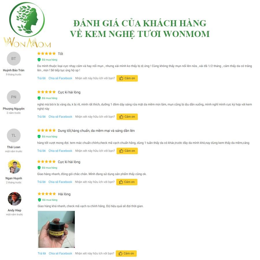 Kem nghệ tươi Wonmom giúp dưỡng trắng hồng da tự nhiên, không vàng da, không bắt nắng, mờ thâm, liền sẹo, ngăn ngừa mụn hiệu quả.