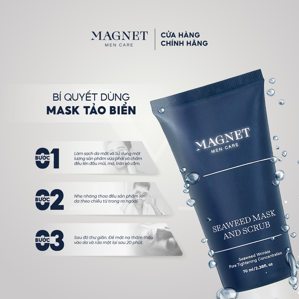 Tên sản phẩm: Combo Đẹp Da Magnet Men Care Sữa Rữa Mặt Nam 100ml & Mặt Nạ Tẩy Tế Bào Chết 70ml & Sữa Dưỡng Da 50ml