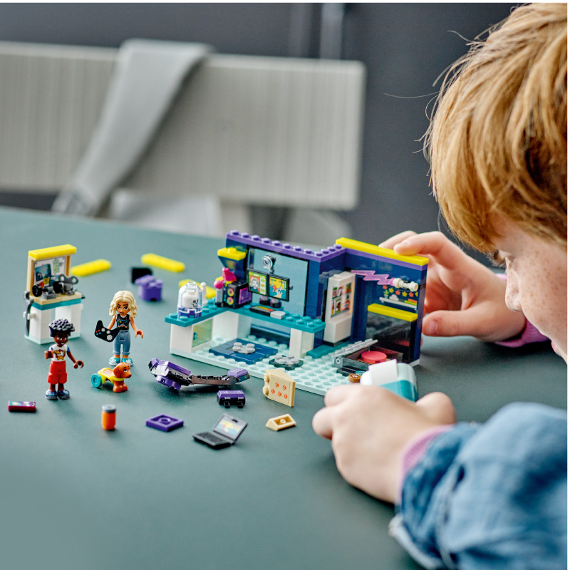 Cùng chơi game với Nova nhé? Khám phá căn phòng của Nova với sự đam mê game. Cùng Nova và Zac tham gia các trò chơi yêu thích của họ. Kiểm tra PC với bàn phím, quạt neon, ghế chơi game và micro. Khi đến giờ nghỉ ngơi, hãy thưởng thức đồ uống và cùng đọc truyện tranh. Hoặc thư giãn với chú cún Pickle. Cậu bạn cún với bánh xe hỗ trợ của riêng mình, và cùng chơi đùa với nhau nhé. Đây là chú cún may mắn được Nova nhận nuôi!