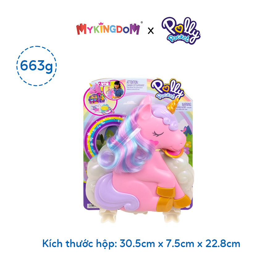 Polly Pocket Rainbow Unicorn Salon cách chơi 2 trong 1 với tóc kỳ lân tạo kiểu ở bên ngoài và bộ đồ chơi 3 tầng ở bên trong!