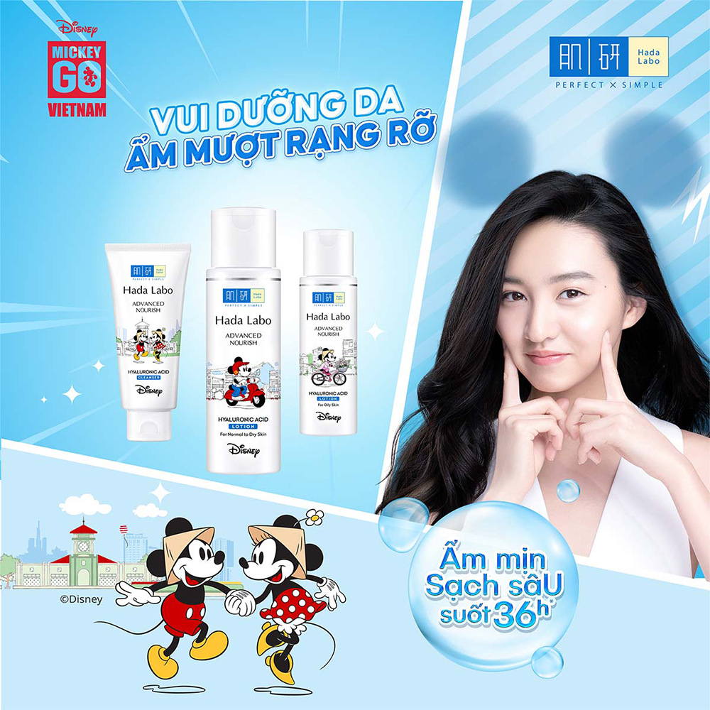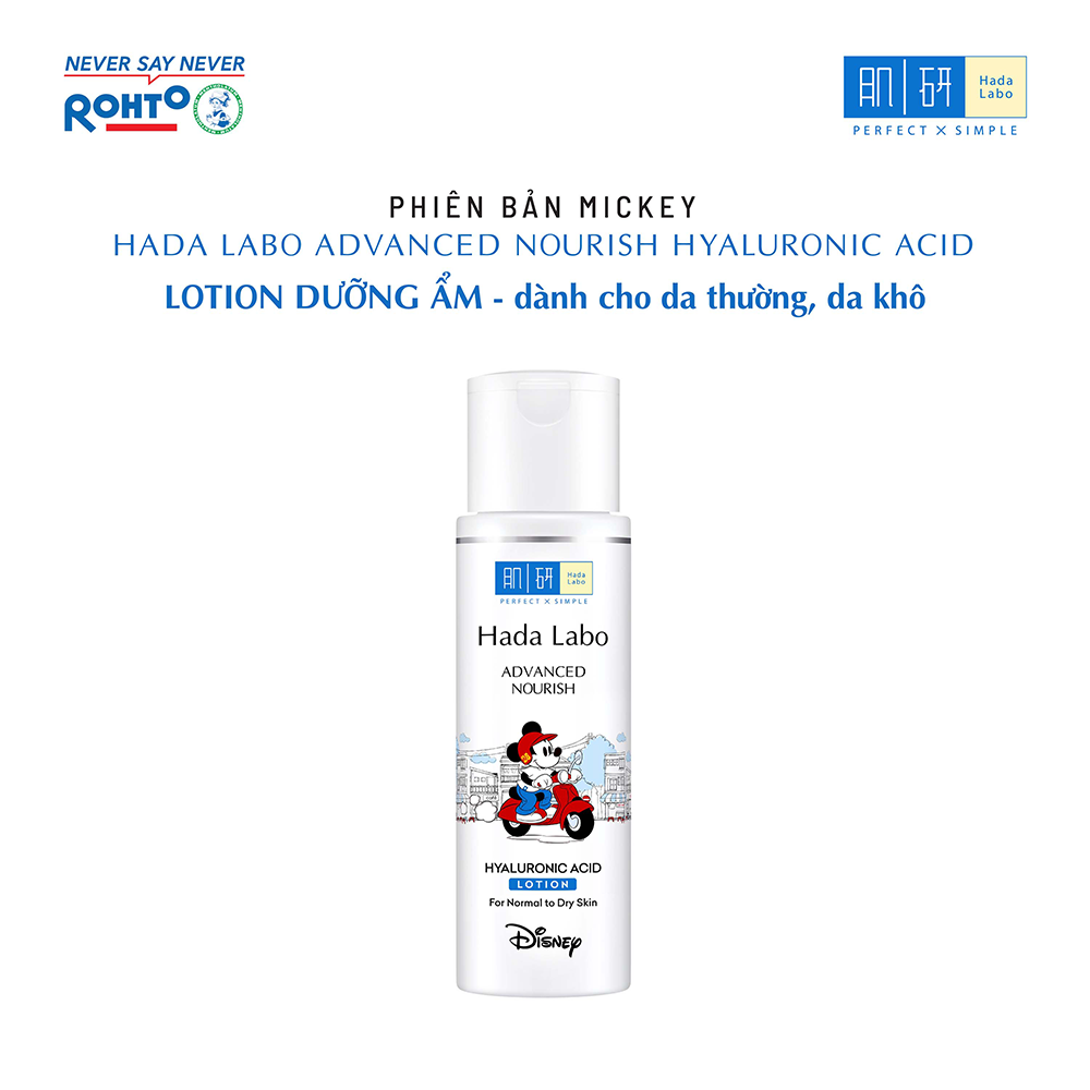 Dung dịch dưỡng ẩm tối ưu Hada Labo Advanced Nourish Lotion cho da thường và da khô 170ml - Phiên bản Mickey - Từ mong muốn biến những khoảnh khắc chăm sóc làn da rất đời thường trở nên vui tươi và thư giãn, Hada Labo kết hợp cùng Mickey Go Vietnam – biểu tượng quen thuộc mang đến niềm vui đánh dấu cột mốc đáng nhớ: 13 năm kiến tạo vẻ đẹp Việt.