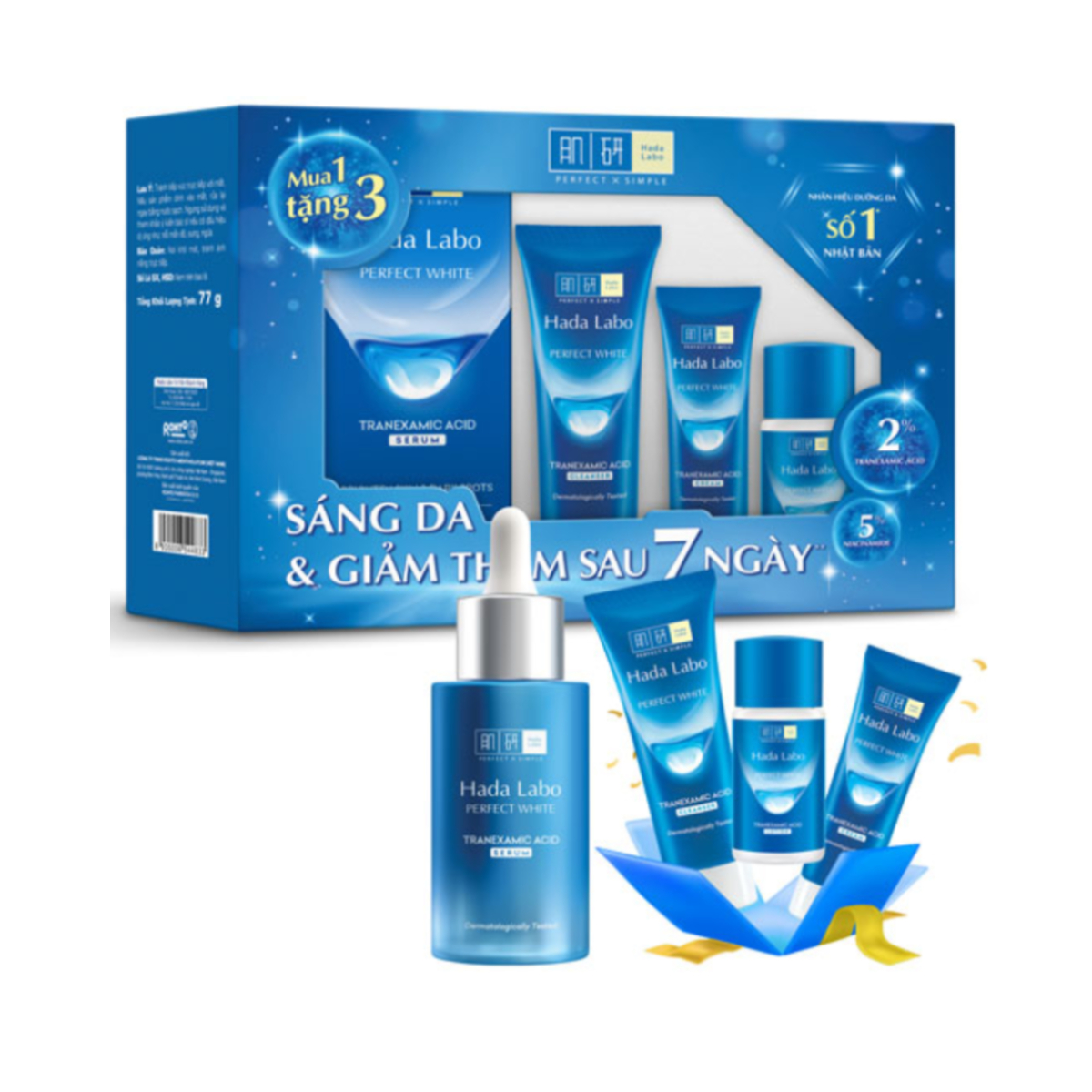 Hộp quà Serum dưỡng trắng da tối ưu Hada Labo Perfect White Tranexamic Acid Serum 30ml