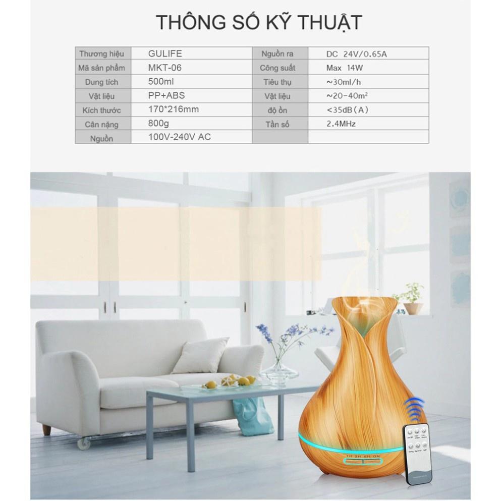 Máy Xông Tinh Dầu Bình Hoa Tulip Khuếch Tán Phun Sương Tinh Dầu Tỏa Hương Thơm Cho Phòng Ngủ Tặng Kèm Điều Khiển Từ Xa