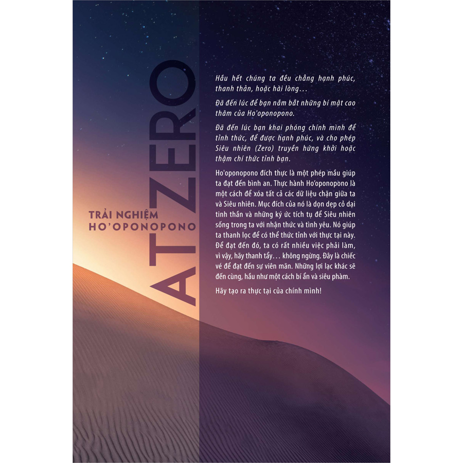 Nếu Không giới hạn (Zero Limit) là sự bắt đầu của phương pháp Ho’oponopono thì Trở về không (At Zero) chính là sự nối tiếp thông điệp với những phương thức nâng cao bí truyền, mở đường cho phép mầu xảy đến trong thực tại.
